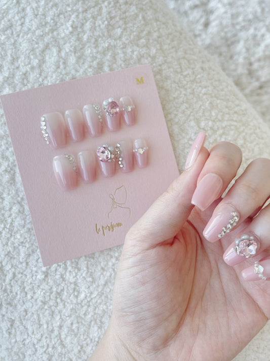 Gradient Pink Diamond Press On Nails