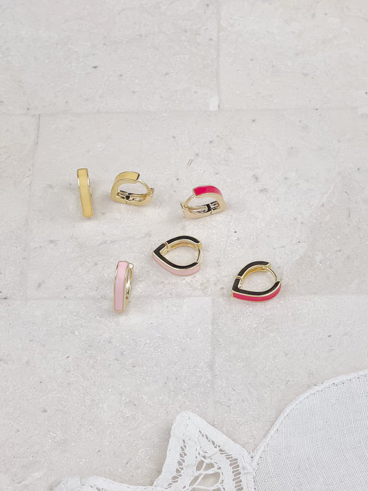 Gold Plated Enamel Mini Hoop Earrings 3-Pack