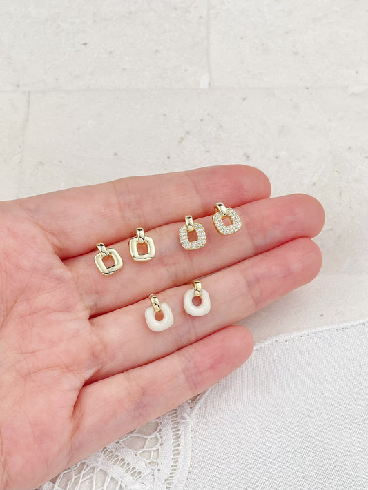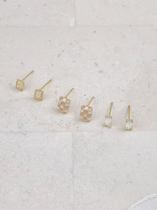 Gold Plated Diamond And Enamel Mini Square Stud Earrings 3-Pack