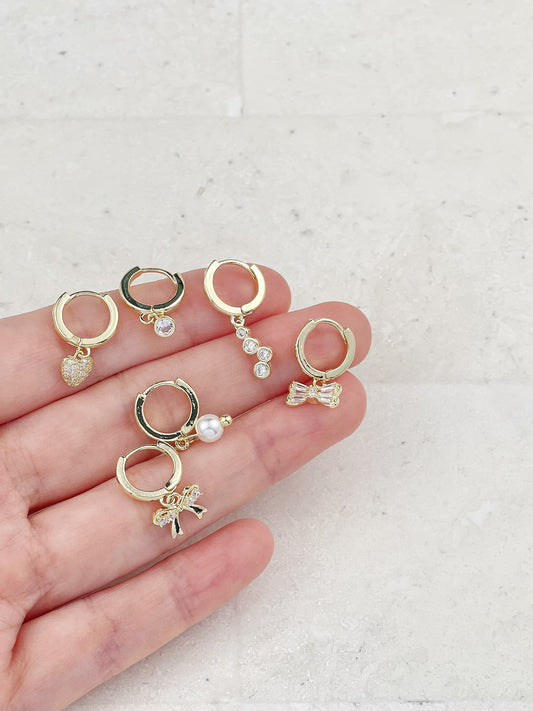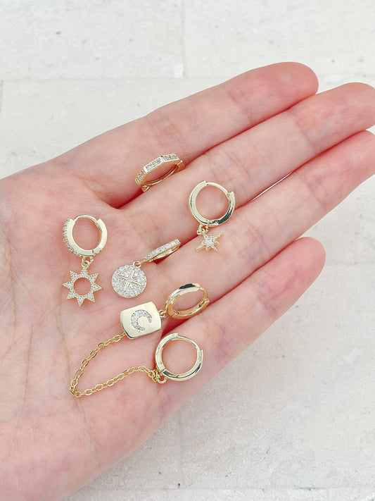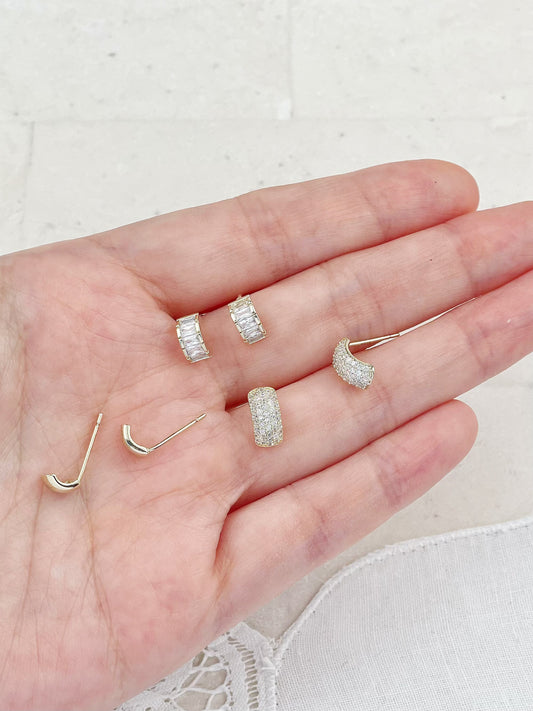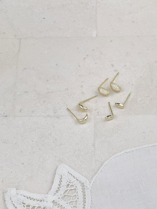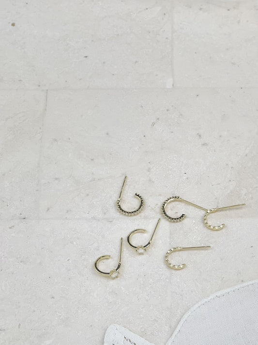 Gold Plated Diamond Half Circle Set Mini Earrings 3-Pack