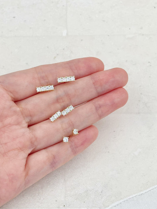 Gold Plated Diamond Stud Earrings 3-Pack