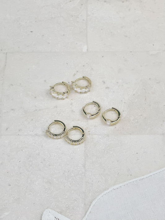 Gold Plated Diamond Set Mini Hoop Earrings 3-Pack