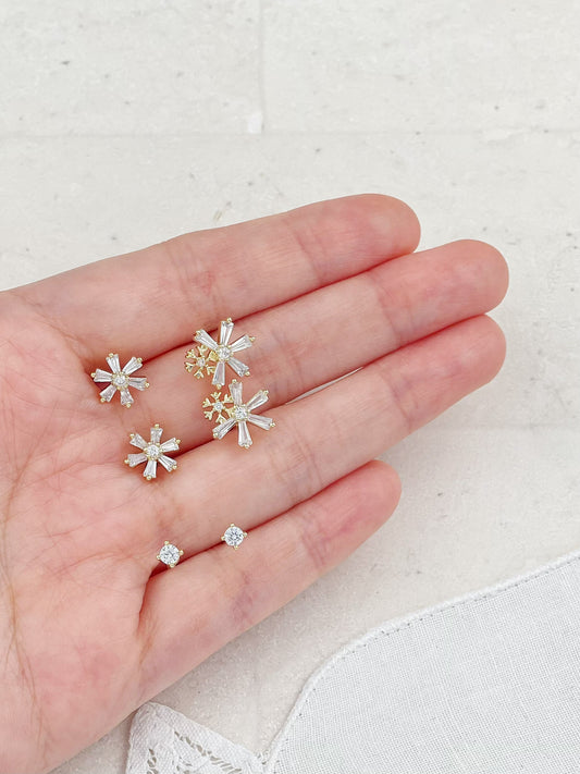 Gold Plated Diamond Snowflake Set Mini Stud Earrings 3-Pack