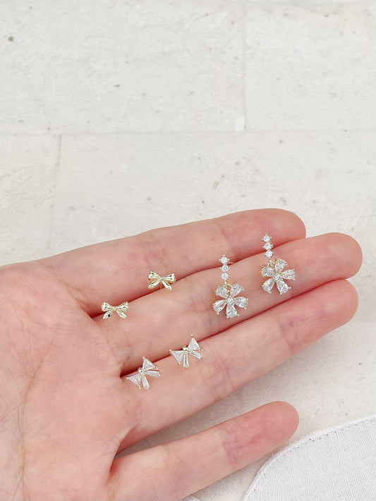 Gold Plated Diamond Mini Snowflake Bow Earrings 3-Pack