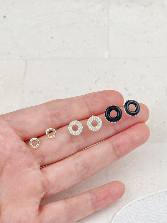 Gold Plated Diamond And Enamel Mini Donut Set Stud Earrings 3-Pack