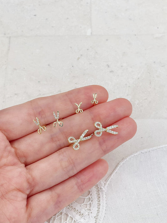 Gold Plated Mini Diamond Scissors Set Stud Earrings 3-Pack