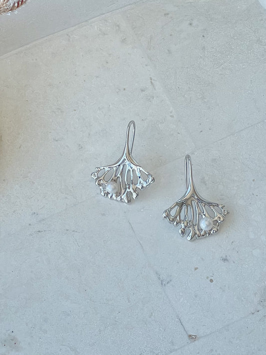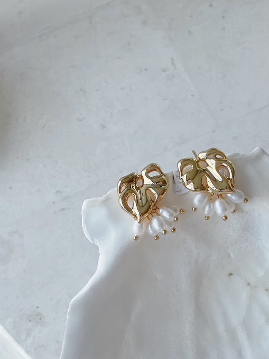 Juliet Gold Plated Leaf Freshwater Pearl Stud Earrings
