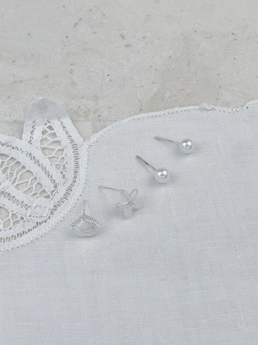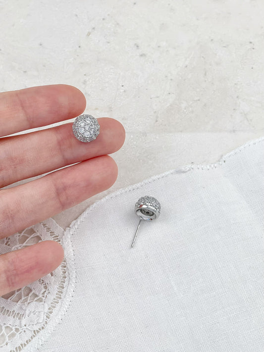 Silver Diamond Platinum Gray Pearl Stud Earrings