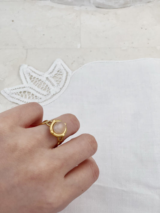 Gold Plated White Chalcedony Sun Ring