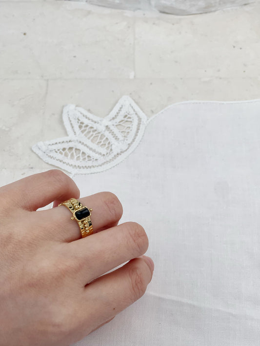 Gold Plated Vintage Molten Obsidian Ring