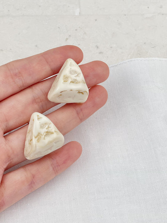 Gold Plated Vintage Ivory Acrylic Square Stud Earrings