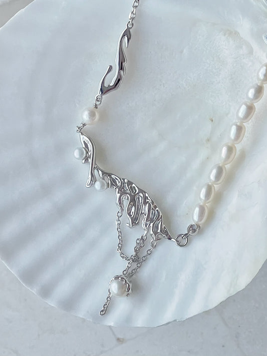 Marie Sterling Silver Molten Tassel Freshwater Pearl Necklace