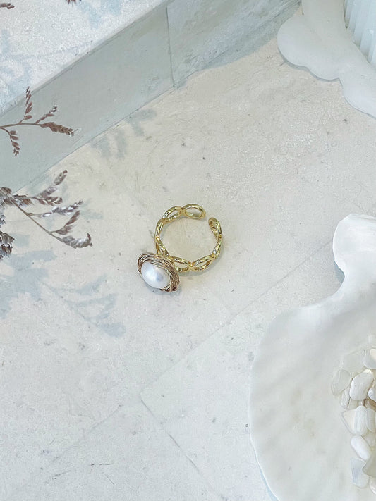 Metsänneito Gold Plated Freshwater Pearl Ring