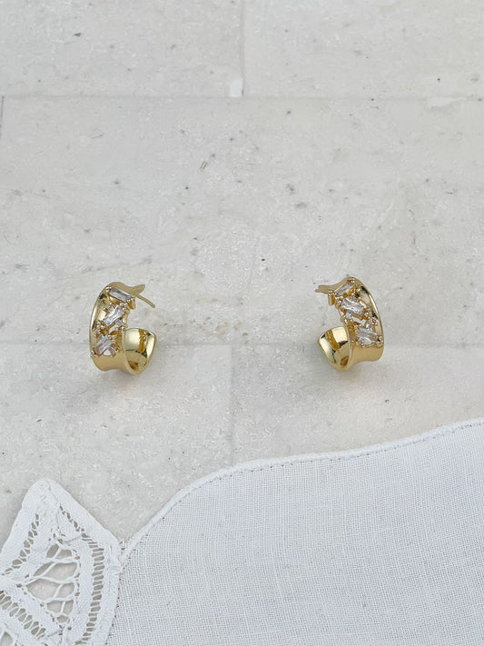 Gold Plated Rock Sugar Crystal Mini Hoop Earrings