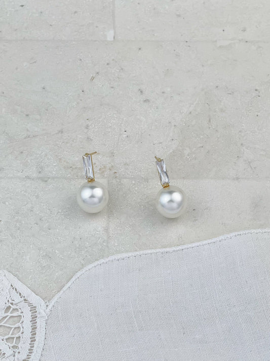 Silver Four Leaf Flower Pearl Diamond Earrings