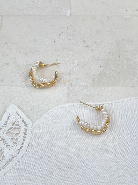 Gold Plated Molten Mini Pearl Hoop Earrings
