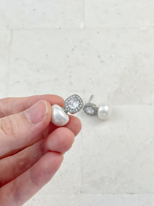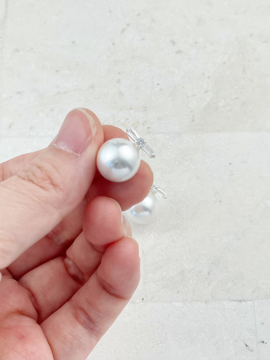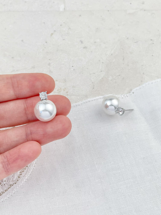 Silver White Pearl Cubic Zirconia Stud Earrings