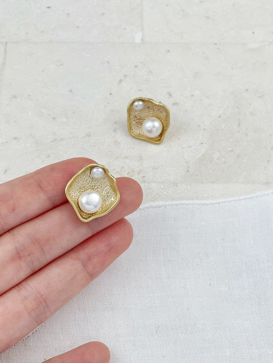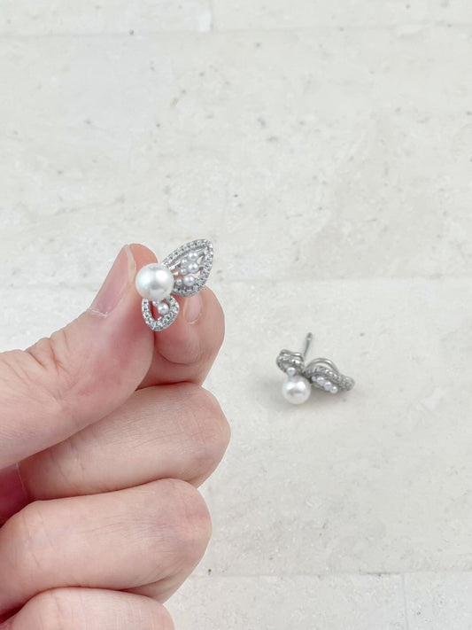 Silver Plated Pearls Stereoscopic Butterfly Stud Earrings