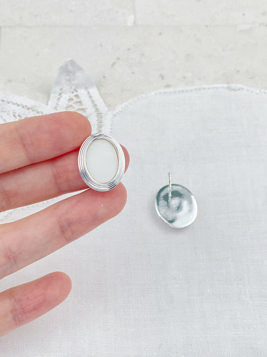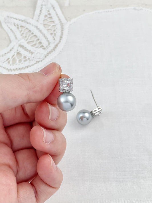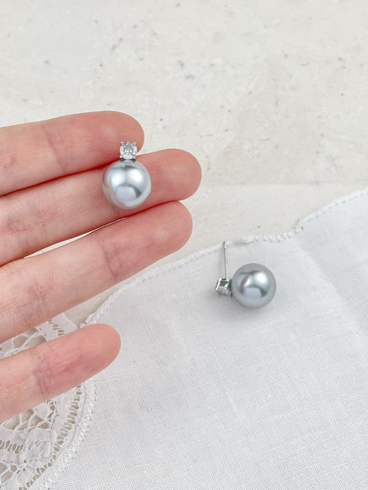 Silver Diamond Platinum Gray Pearl Stud Earrings