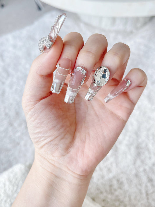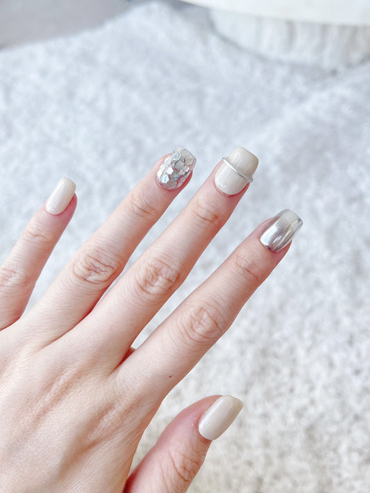 Silver Feather Streamer Press On Nails